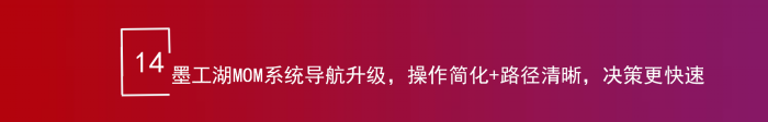 功能价值:为提升墨工湖MOM系统操作便捷性与使用效率,32.19版本对系统导航进行专项优化,以更简洁的命名、更清晰的归类,为用户打造高效直观的操作体验。系统一级导航采用简化命名,减少冗余信息干扰,同时支持直接查看版本号,核心信息一目了然;针对质量、仓储、设备、IOT等高频使用模块,通过重新归类与优化命名,让功能模块逻辑更清晰、查找更便捷,有效降低用户学习成本与操作耗时,帮助生产管理人员快速定位核心功能,提升车间数字化运营的决策效率与协同质感。